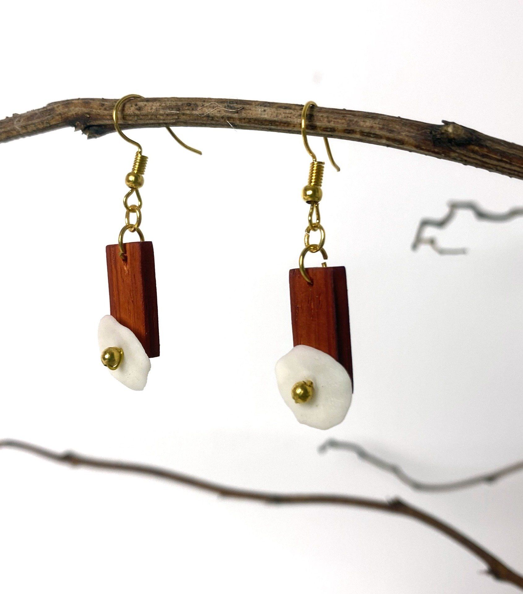 Boucles d'oreilles artisanales en bois et porcelaine froide.