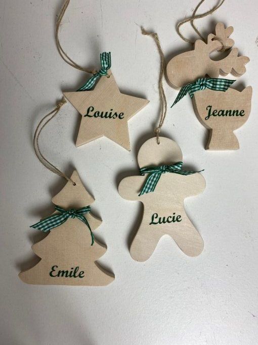 Décoration de sapin en bois avec prénom ( forme au choix).