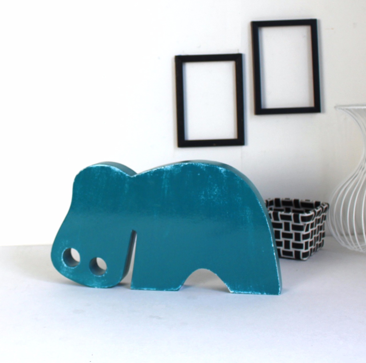 L'hippopotame est dessiné et découpé par nos soins à la scie à chantourné en 3,5 cm d'épaisseur.