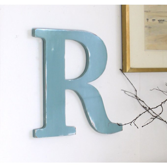 Lettre murale patinée de 35 cm de hauteur en 1,3 cm d'épaisseur.