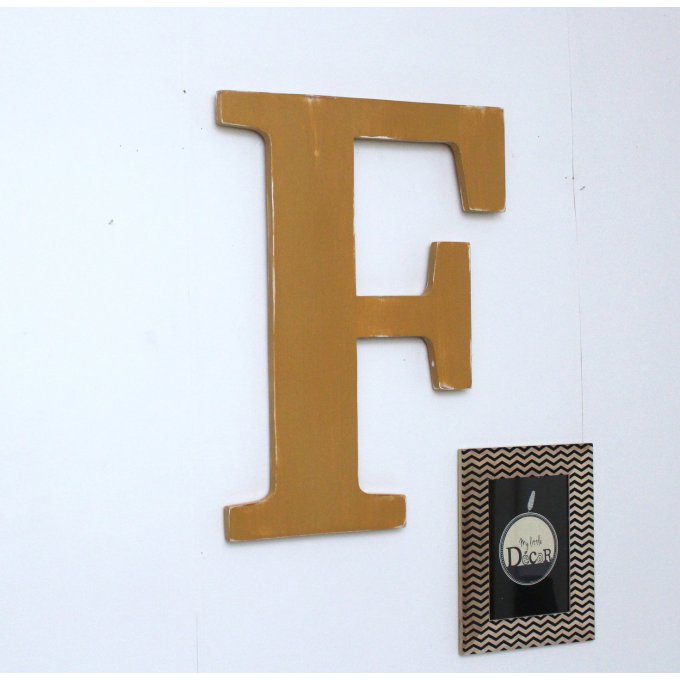 Lettre murale patinée en 50 cm de hauteur et 1,3 cm d'épaisseur.