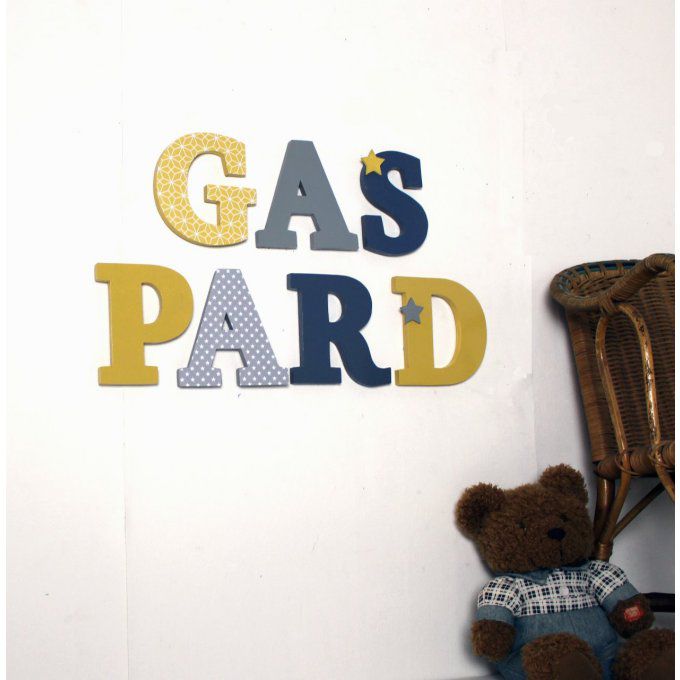 Lettres décoratives LOHAN tons blanc,bleu et rouge.
